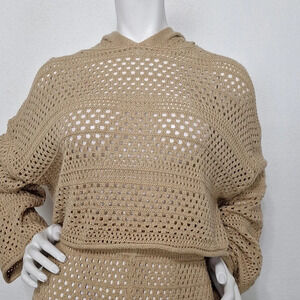 Sincerely Jules Coquette NEW Tan Boho Crochet Short & Bell Sleeve Oversized Sweater Set