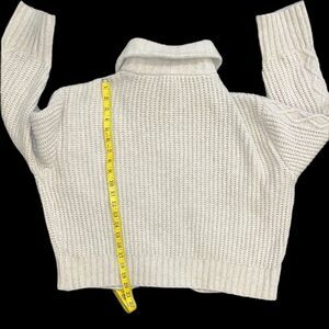 Stay warm and stylish with this cozy oatmeal cable knit sweater with zipper detailing at neckline. So very soft and machine washable. Great cozy casual look. 20” shoulder to hem, 25” PtoP, 27” sleeve length. NON-smoking/no dog home.