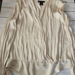 Sincerely Jules Cream Sheer Deep V Blouse/Bodysuit Size Medium