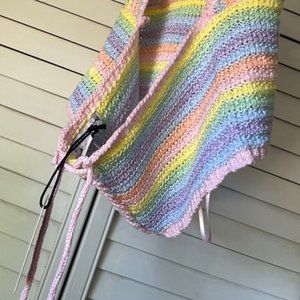 Crochet Sincerely Jules Sz L Halter for festivals and everyday fun. The garment is 16" below the breast across and stretches. Acrylic yarn. I would suggest hand wash.