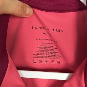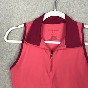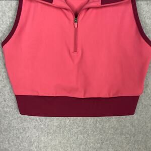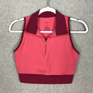 Sincerely Jules Top Womens Small Pink Active Polo Tank Crop Golf Tennis 1/4 Zip Pickleball Sleeveless Athleisure Exercise Workout Yoga Golf Tennis Colorblock Racerback Collar Sleeveless