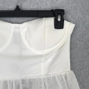 Sincerely Jules Top Womens Medium White Crop Corset Bustier Ruffle Tulle Twee Preppy Party Cocktail Strapless Sweetheart Beach Vacation Resort Coastal Western Cowgirl Rodeo Smocked Stretch