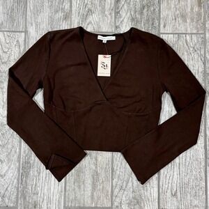 Very Cute top by Sincerely Jules. Chocolate Brown color, crossover faux wrap top, cropped. Long sleeve, with a slit at the open ended cuff. New with tags.