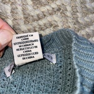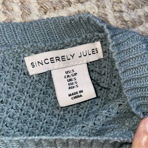 Sincerely Jules Cropped V-Neck Scrunch Tie Sweater Teal Blue Size Small