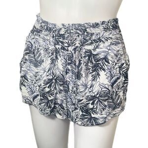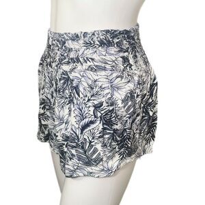 Sincerely Jules Smocked Waist Flowy Drawstring Shorts in Women's Large (RUNS SMALL). White/blue monochrome tropical leaf print! These shorts have a wide smocked elastic waist and functional hip pockets. Lightweight and breezy, pull on style with drawstring closure! Worn once or twice and in like new condition! Runs small and fits  like a size small!