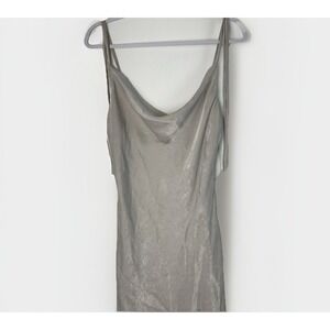Sincerely Jules Dress Large Midi Gray Silky Cowl Neck Slip Stretch 90s Y2K