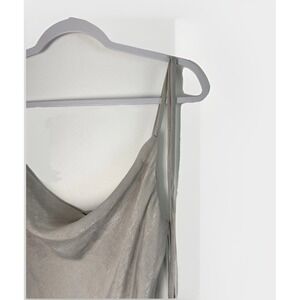 Sincerely Jules Dress Large Midi Gray Silky Cowl Neck Slip Stretch Fairy 90s Y2K