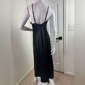 Stunning black satin gown with lace detailing. Perfect for formal occasions in good condition.