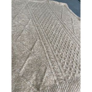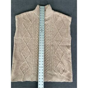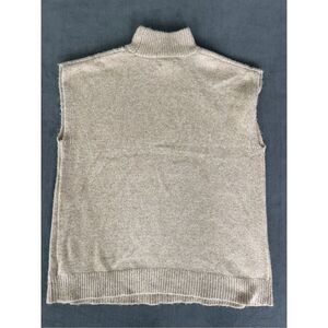 Elegant gray turtleneck sweater. Features intricate knit pattern. Sleeveless design. Perfect for layering.