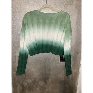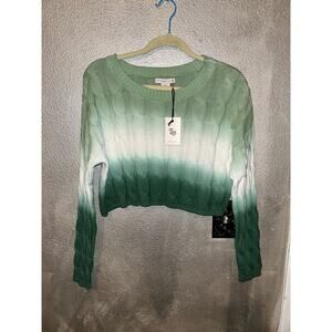 Sincerely Jules Green White Ombre Cable Knit Crop Sweater NWT Medium St Patricks