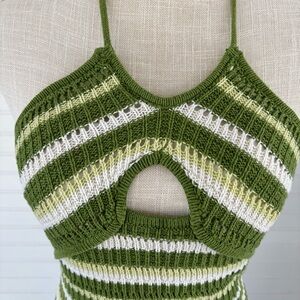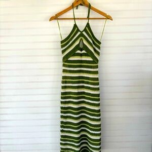 Sincerely Jules Green and White Halter Midi Dress