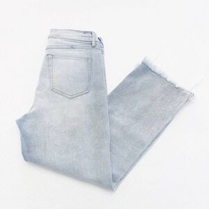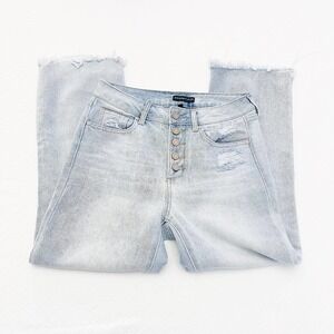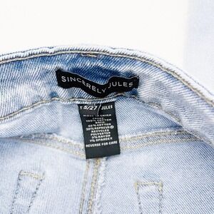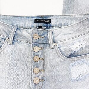 Sincerely Jules Button Down Light Wash Denim Jeans Distressed Hem SZ27