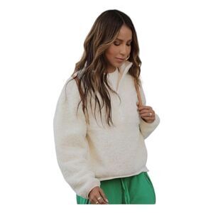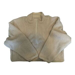New with tags. Soft, warm, and thick. 100% polyester Sherpa. Body Lining is 100% cotton. Sleeves are not lined. Thin banded cuff and hem. 1/2 zip. Boxy short sweatshirt. Very oversized, long sleeves.