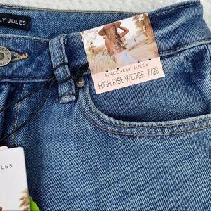 Sincerely Jules Jr’s Sz 7 W28 Med Blue High Rise Wedge Distressed Denim Shorts