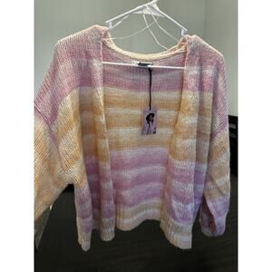 Sincerely Jules Knit Pink Orange Ombré Cardigan Balloon Sleeves Size Small NWT