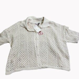 Sincerely Jules Medium 2 pc Open Knit Crochet Set Beach Cover Flare Pant NEW