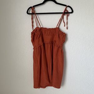 Sincerely Jules Mini Dress Women M Burnt Orange Flax Boho Western Festival Rodeo