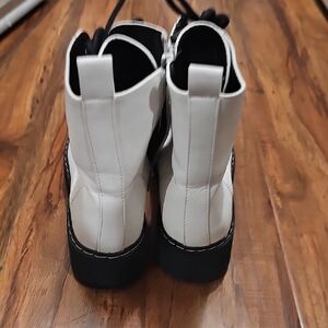 Black and white ankleboots. Features a sleek design. Ideal for versatile styling.