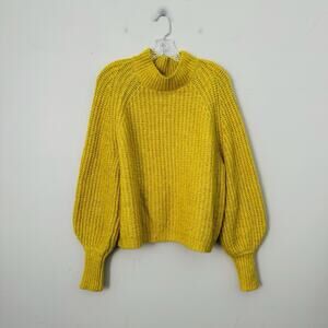 Sincerely Jules Mustard Yellow Crochet High Neck Pullover Sweater Women’s M