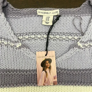 Sincerely Jules NWT White Gray Purple Bell Flare Sleeve Crop Sweater Size Medium