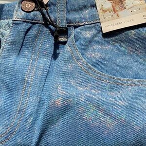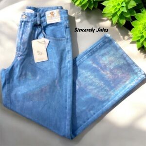Sincerely Jules NWT Wide Leg Shimmer Sparkling Metallic Blue Jeans Sm& Md