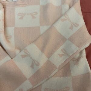 Embrace a blend of comfort and style with the Sincerely Jules Pink and White Crew Neck Sweater. This sweater showcases a bold checkered pattern in soft pink and cream, offering a modern twist to a classic design. Crafted from a cozy knit material, it's perfect for adding a touch of elegance to your wardrobe.