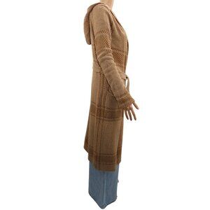 Sincerely Jules Plaid Hooded Belted Cardigan Coatigan M Tan Cozy Cabincore Boho