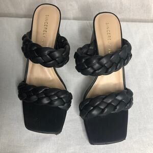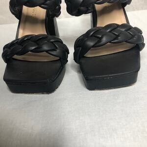 Sincerely Jules Platform Heeled Sandal Black Chunky Braided Square Toe 8