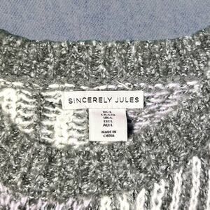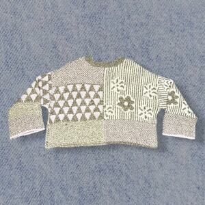 Note: This Sincerely Jules patchwork knit sweater features a stylish mix of patterns in a soft pastel colorway. Perfect for layering or wearing on its own for a cozy, chic look. Please review all photos for condition details, as colors may appear slightly different due to lighting.