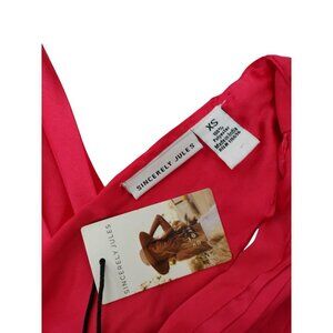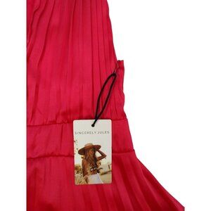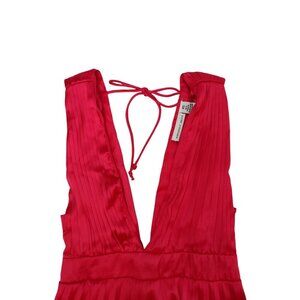 Sincerely Jules Red Pleated Sleeveless Dress With Plunge Neck & Tie Back XS, NWT