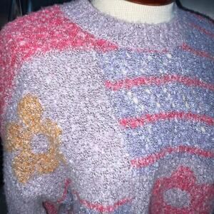 Sincerely Jules Size XS Floral Sweater Cropped Soft Floral Boxy Loose Fit Chunky