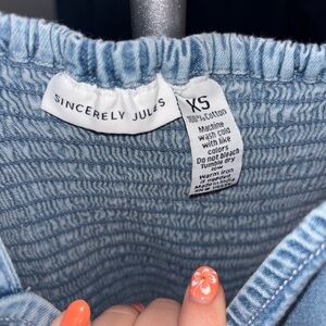 Size XS Sincerely Jules denim dress with belt. Like new condition.