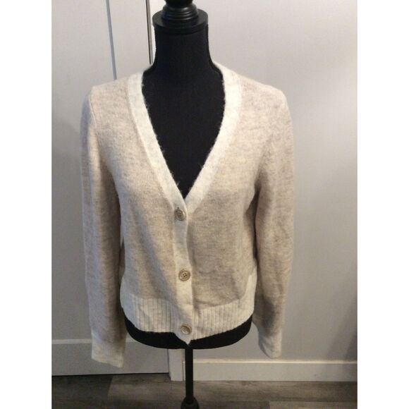 Sincerely Jules Soft Button Front Cardigan Sweater Tan Cropped Large L