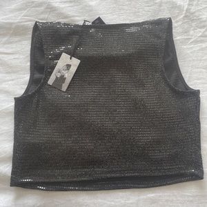 Sincerely Jules Sparkly Black Cow Neckline Sequined Sleeveless Crop Top, Size Small, NWT