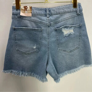 Sincerely Jules Super High Rise Frayed Wedge Distressed Shorts 9