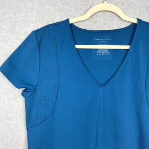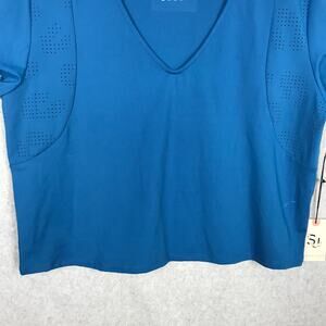 Sincerely Jules Top Women Large Blue Active Cropped Tee Shirt Yoga Exercise READ
