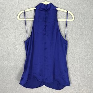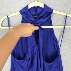 Sincerely Jules Top Womens Medium Blue Blouse Satin Halter Party Career Silky