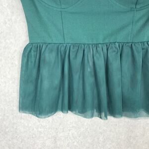 Sincerely Jules Top Womens Medium Green Crop Corset Bustier Ruffle Tulle Twee
