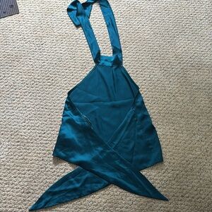 Elegant blue scarf top with halter neck. Ideal for a trendy outfit. Silky by feel. Great condition.