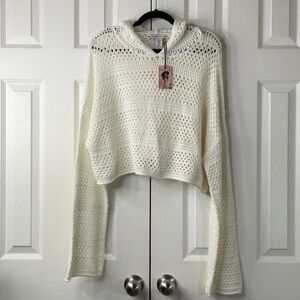 Sincerely Jules White Open Knit Hoodie Top Size XL