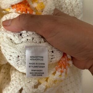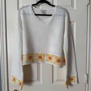 Sincerely Jules White and Yellow V-Neck Sweater with Floral Accents