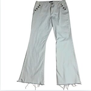 Sincerely Jules White/Cream Flare Jeans Sz 11/30 Button Front Raw Hem Retro Boho