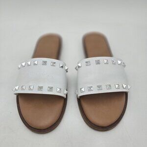 Sincerely Jules Womens 9 White Strap Slide Silver Studded Sandals Slip On Padded