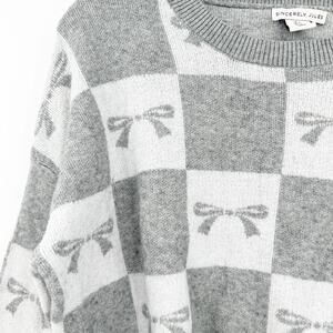 Sincerely Jules Womens Fall Bow Checkered Crewneck Knit Sweater Size L Gray