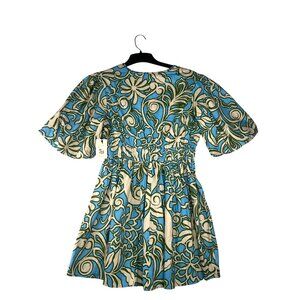 Lightweight and breathable dress with a flattering cinched waist, flutter sleeves, and a vibrant floral pattern for a casual or semi-formal look.
