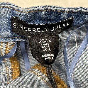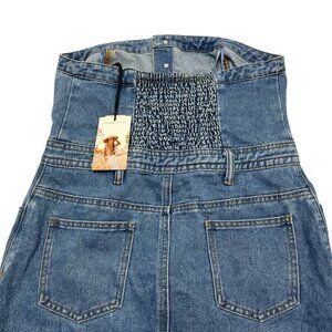 Sincerely Jules Y2K Dress Womens L Denim Strapless Cropped Wide Leg Smocked