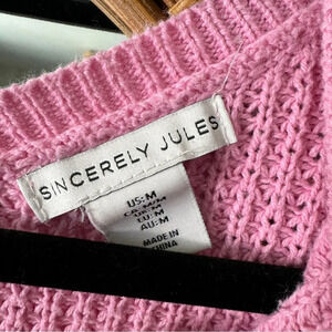 Sincerely Jules drawstring pink knit sweater V neck size M fits small