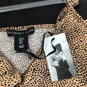 Sincerely Jules spaghetti strap print flowy, ditzy print, drapey body suit. Size large. NWT