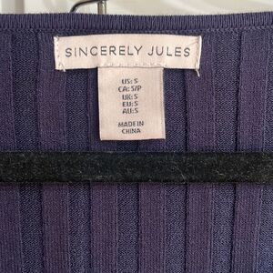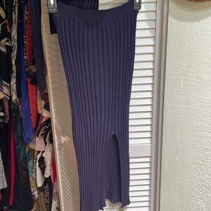 Sincerely Jules size small (fits like XS) ribbed-knit skirt and sweater set. Dark blue. The skirt has a slit that hits just above the knee. Condition is NWOT.