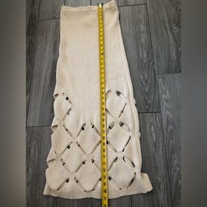Sincerely Jules|Tan chunky knit midi maxi skirt with cutout details at bottom•